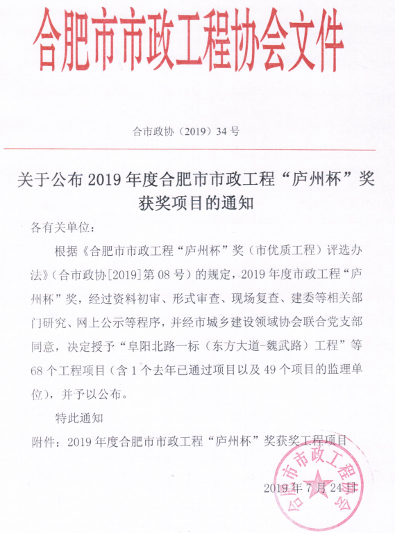 近日,公司承建的合肥清溪凈水廠PPP項目榮獲合肥市市政工程“廬州杯”獎(市優(yōu)質(zhì)工程)。合肥清溪凈水廠是安徽省首座全地埋式污水處理廠,設(shè)計規(guī)模為20萬噸/日,最大處理能力26萬噸/日,建成后與望塘污水處理廠共同承擔望塘污水系統(tǒng)的污水處理,服務(wù)范圍66平方千米。...