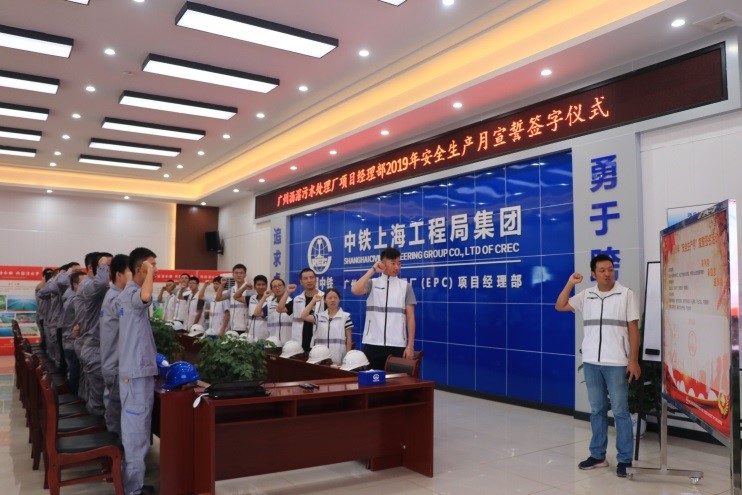 廣州瀝滘污水處理廠項目部:組織全體職工進行2019年安全質量集體宣誓,并聯合業主、監理單位在會議室舉行簽字儀式。...