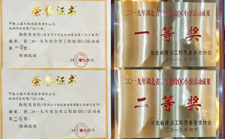 4月23日,從湖北省建設工程質量安全協會獲悉,由中鐵上海工程局集團市政公司承建的北湖污水處理廠及其附屬工程土建工程項目部分獲2019年湖北省工程建設QC活動一、二等獎,其中《提高圓形構筑物鋼筋安裝一次性合格率》獲得一等獎。