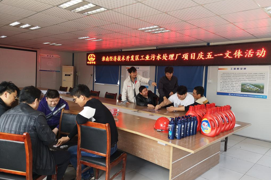 4月30日上午,淮南經(jīng)濟技術(shù)開發(fā)區(qū)污水處理廠項目經(jīng)理部組織開展了“慶五一”文體趣味活動。項目部在確保生產(chǎn)安全、隊伍維穩(wěn)、施工有序推進的同時,組織安排了搶凳子、跳繩、摜蛋等文體活動。 (胡玉)