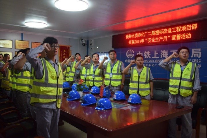 合肥蔡田鋪污水處理廠三期工程:組織全體員工進(jìn)行2019年“安全生產(chǎn)月”集體宣誓簽名活動(dòng)。合肥蔡田鋪項(xiàng)目部目前處于土方施工階段,6月份將進(jìn)入施工大干期間,安全生產(chǎn)是項(xiàng)目能夠按期完在的必要條件。為確保工程順利施工、按期完工,項(xiàng)目部以“安全生產(chǎn)月”宣誓為契機(jī),引導(dǎo)全體職工把安全生產(chǎn)、質(zhì)量管理放在重要位置,進(jìn)一步提升安全生產(chǎn)責(zé)任意識。(朱天娥)