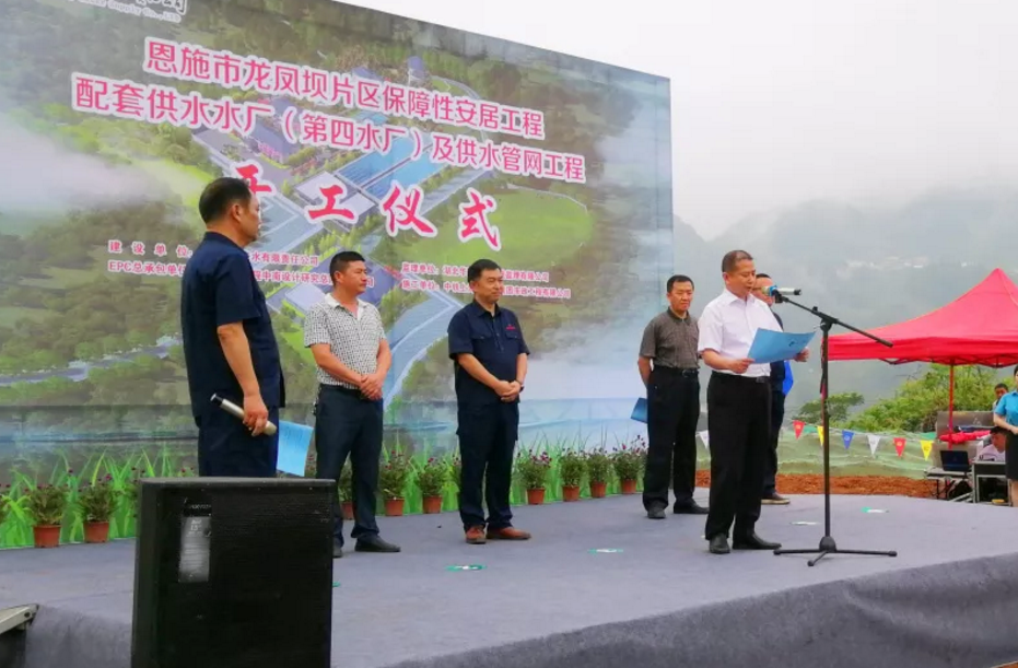 7月17日,公司承建的龍鳳壩片區保障性安居工程配套供水水廠(第四水廠)及供水管網工程項目開工典禮在恩施市龍鳳壩片區項目駐地舉行。恩施市自來水責任有限公司總經理袁進,中國市政工程中南設計研究總院有限公司第四設計院院長李偉國,湖北華隆工程建設監理有限公司副總經理王儲等出席本次開工儀式。